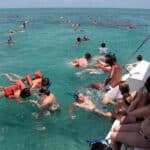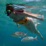 No passeio para Maracajaú está incluso o passeio de barco (catamarã) que leva até os parrachos, a máscara, o snorkel e a taxa de preservação ambiental.